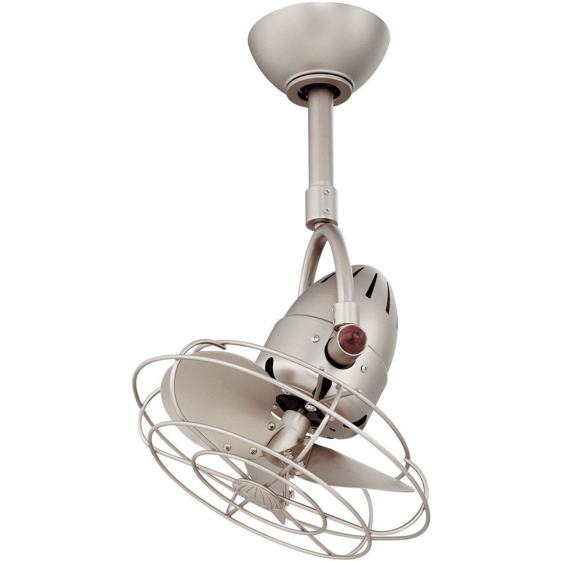 Hand-balanced metal fan head with metal safety cages for low ceiling applications